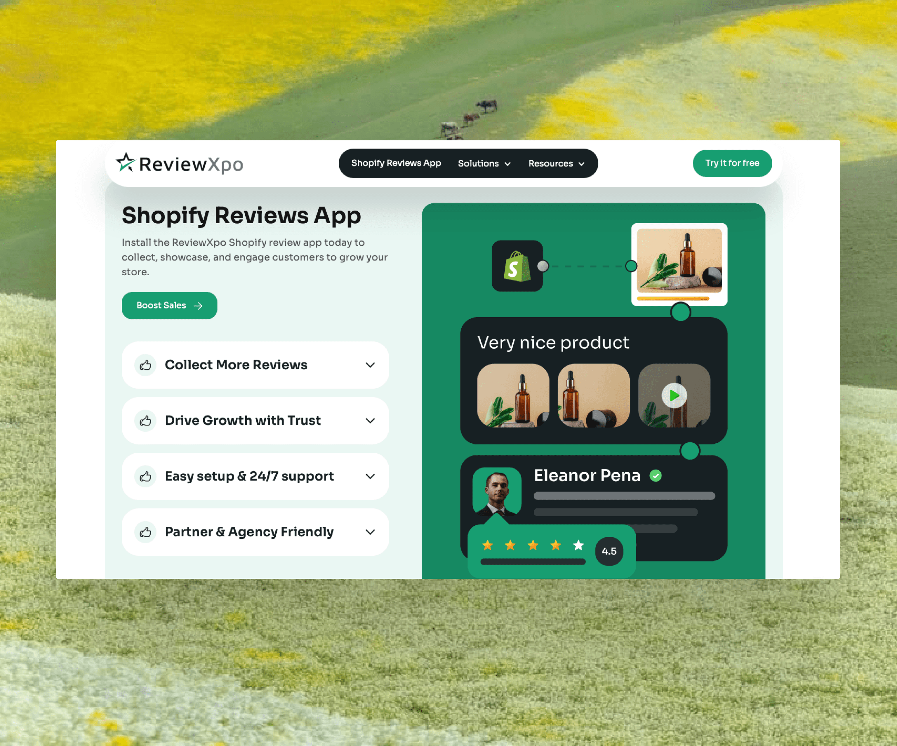 The ReviewXpo Product Reviews App is a Shopify app that helps store owners collect, import, and showcase product reviews, including text, photos, and videos, with detailed multi-criteria ratings. It automates review requests, provides customizable display options, and offers AI-generated responses to reviews.