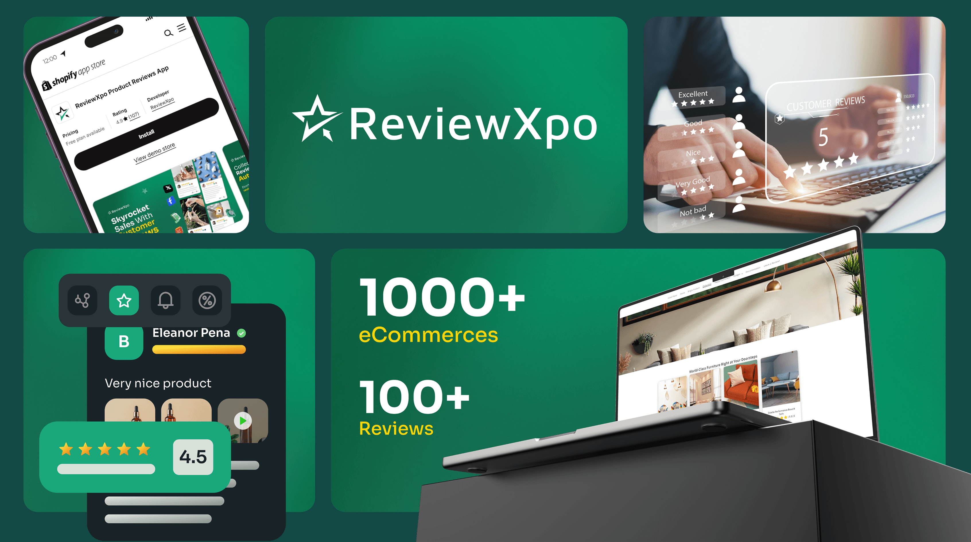 ReviewXpo is a Shopify app that automates customer review management.
