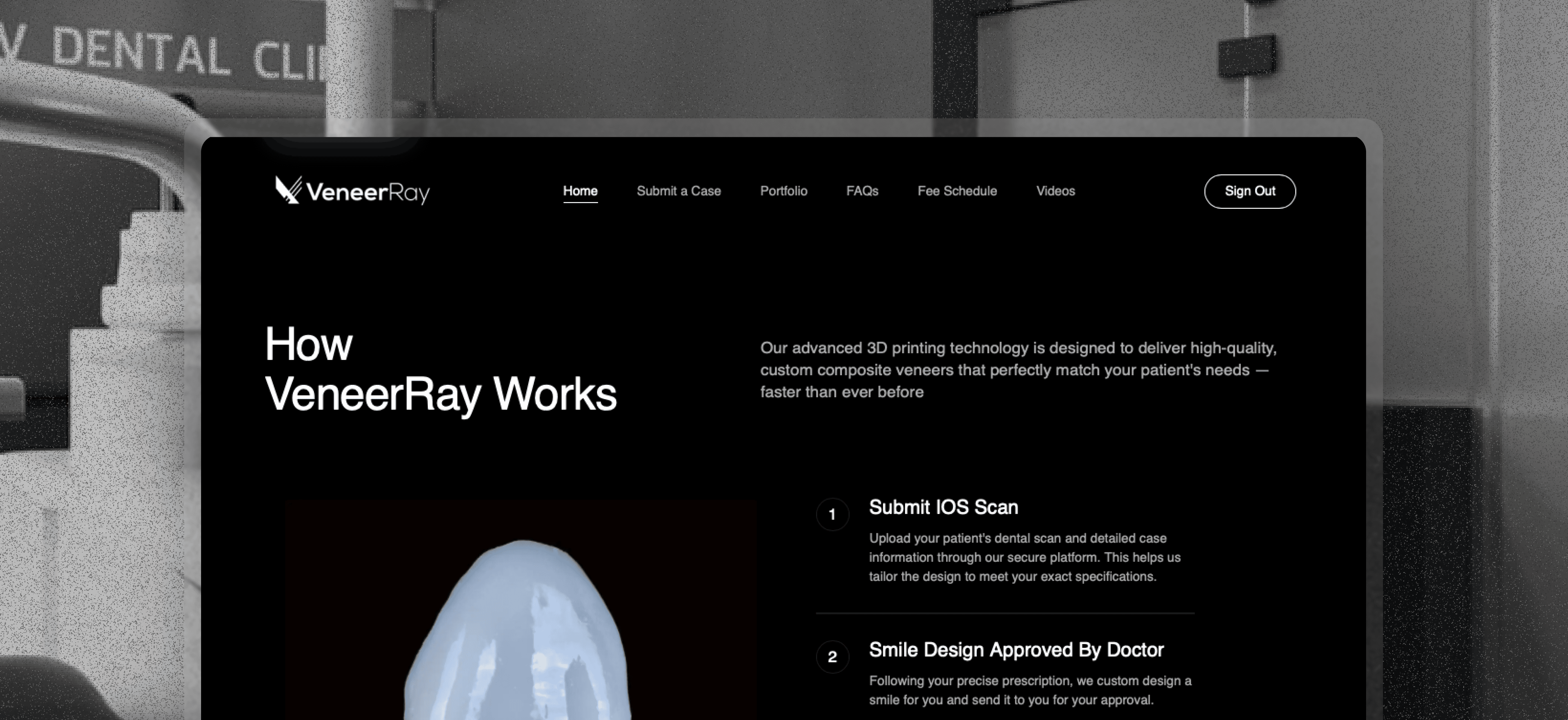 VeneerRay is a dental technology company that revolutionizes the field of cosmetic dentistry by combining innovative 3D printing technology with expert design, offering a streamlined and effective way to deliver custom composite veneers.